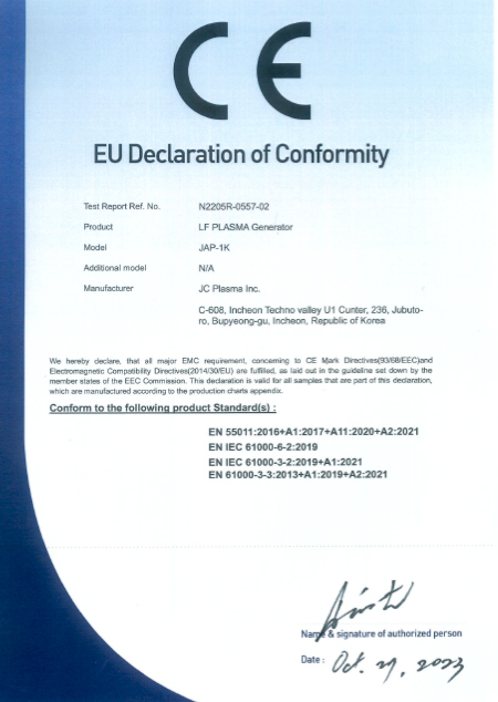 | 항목 | 기존 플라즈마를 | JC Plasma Arc-free Cold Plasma |